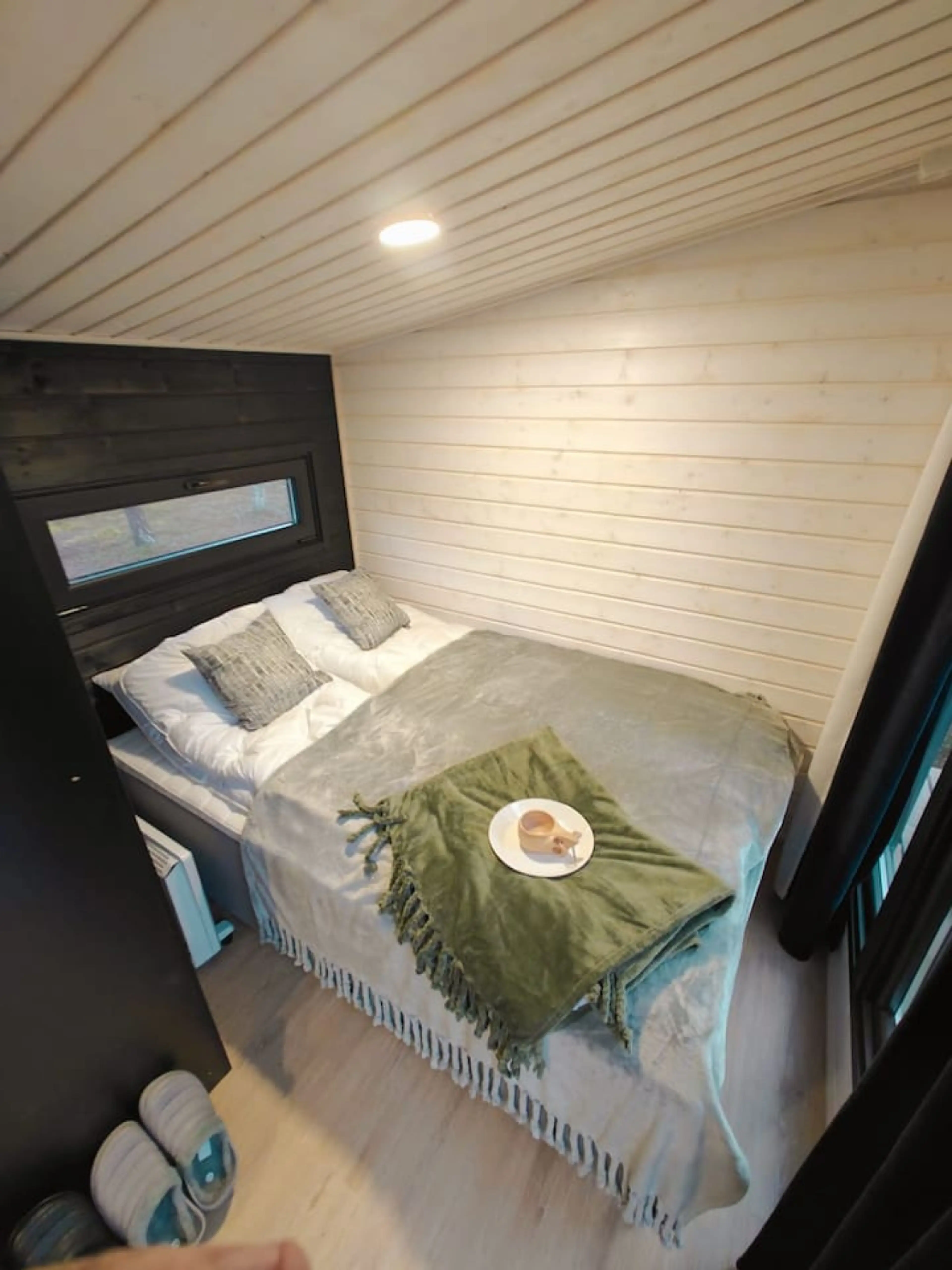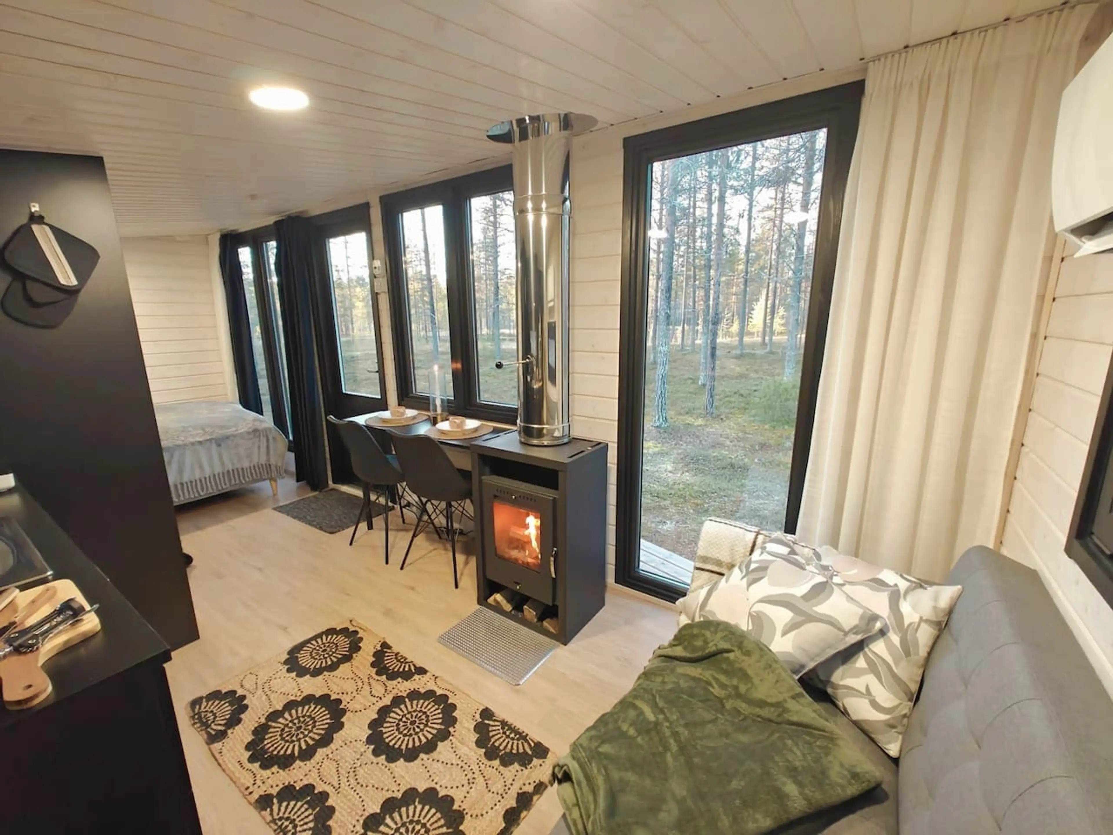 Viihtyisä, kompakti saunallinen mökki rauhallisella sijainnilla, henkilökunta helposti tavoitettavissa ja asiakaspalvelu