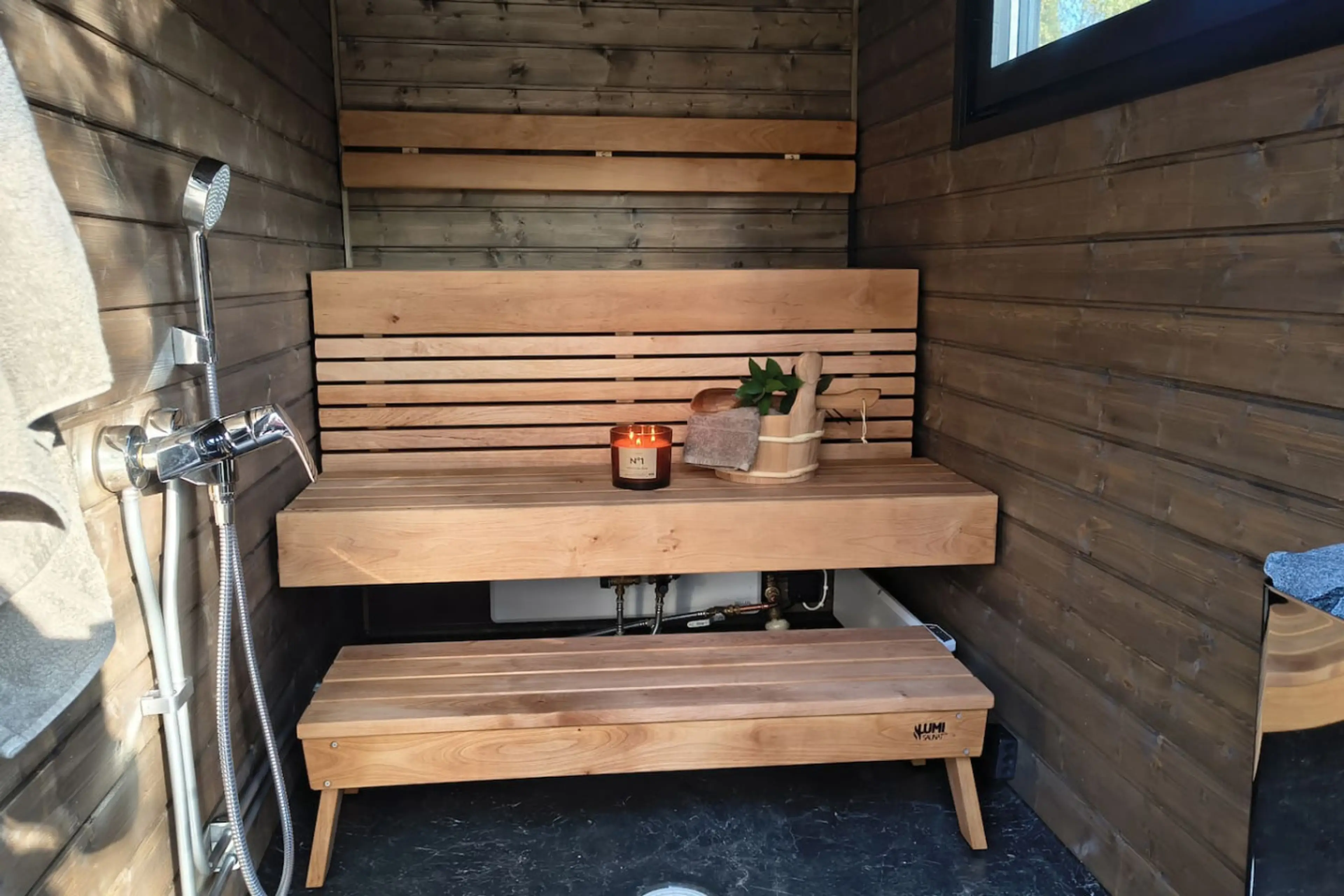 Positive: Villaggino carinissimo, tutto nuovo, pulito e ben fornito (anche friggitrice ad aria), letteralmente in mezzo alla natura, la vista dall’interno della cabina è veramente speciale, sauna personale fantastica e facilissima da usare, istruzioni complete per tutto online, la struttura é stata disponibile in seguito alle nostre richieste. Posto ideale per relax e natura con tutte le comodità.